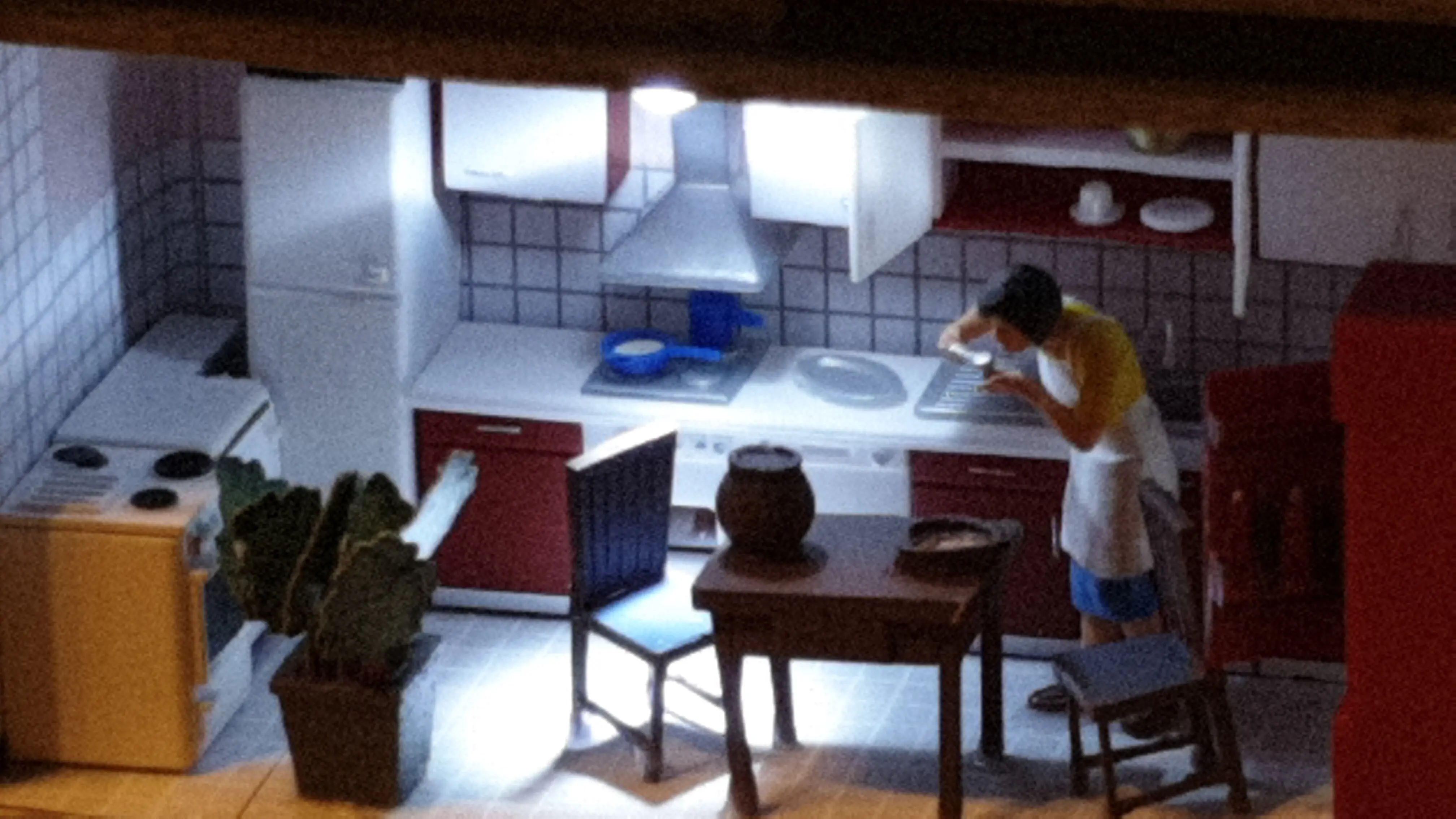 Eine sehr alte Aufzeichnung auf Film. Andy verbrennt sich den Finger an der Kerze.